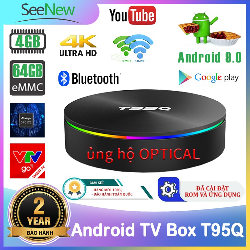 SeeNew TV Box T95Q Siêu mạnh 4K 4G+64G S905X2 Android 9.0 Tivi Box Gigabit Optical Wifi Bluetooth với Ứng dụng miễn phí