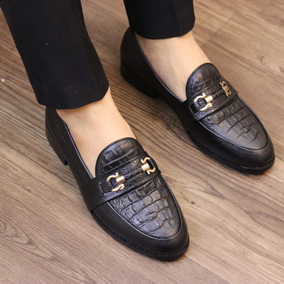 Giảm giá GIÀY LƯỜI IN CÁ SẤU BĂNG XÍCH CỰC CHẤT - GIẦY LƯỜI NAM DA BÒ 100% DẬP VÂN CÁ SẤU, ĐẾ CAO SU - MÃ K15 ĐEN còn 284,050đ